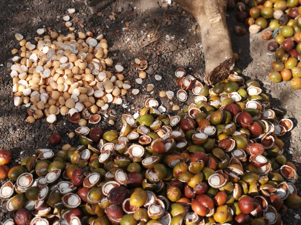La préparation de ntsambu est longue et très fastidieuse. Elle comprend la casse de chaque fève de sagou, plusieurs étapes de séchage qui peuvent durer jusqu’à 2 semaines.